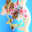ピンクの花やオリーブの実、ビーズを散りばめた