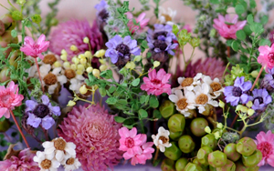 クリアなレジンの中に草花をたくさん詰め込んだ猫ちゃん時計です。