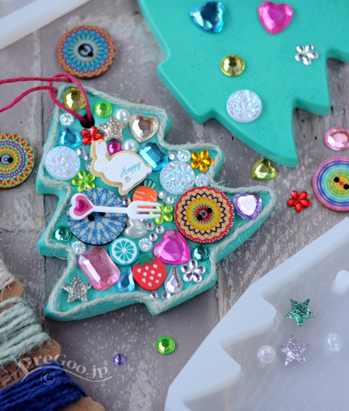 型出し後、上から色んなきらきらやボタンをボンドで接着して